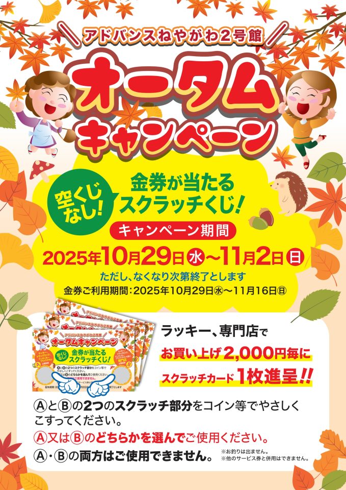 ≪2号館≫ 10/29~11/2『オータムキャンペーン』スクラッチカード進呈!!