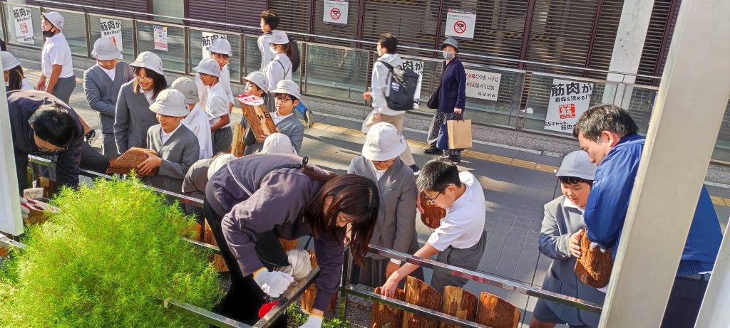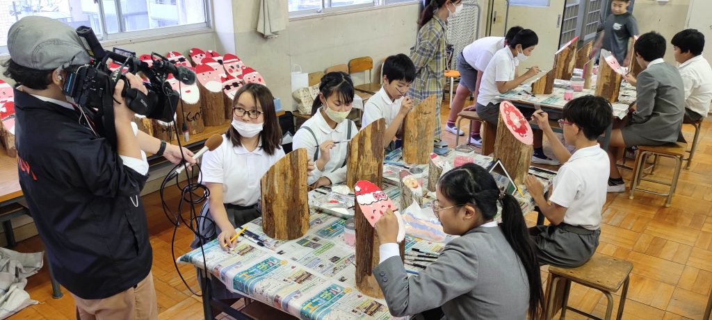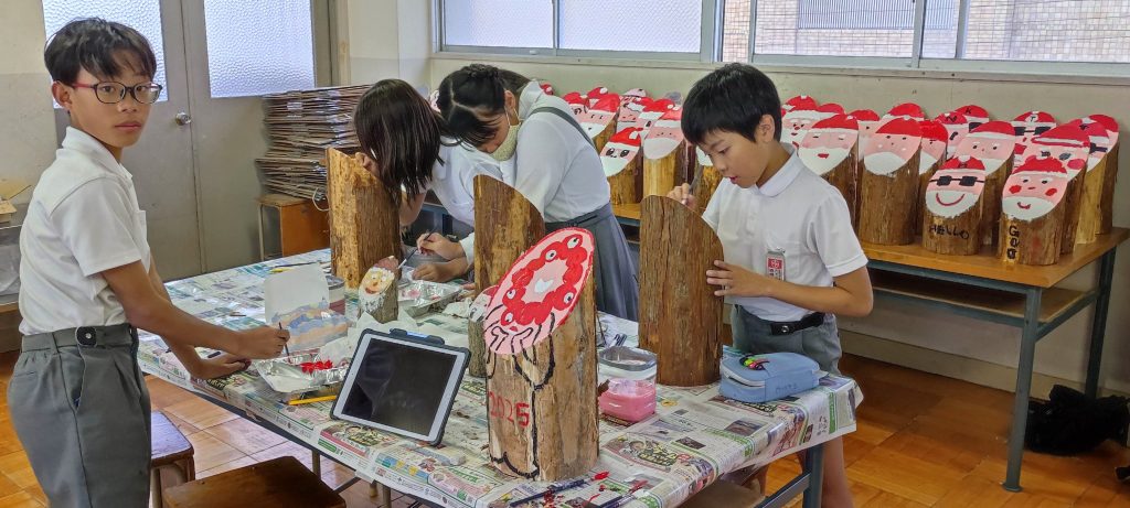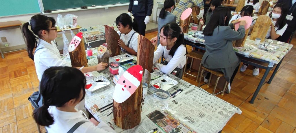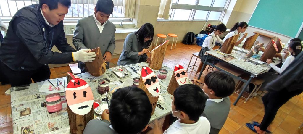 <2025.10.22 市立中央小学校にて「切り株サンタ」の製作を行いました>