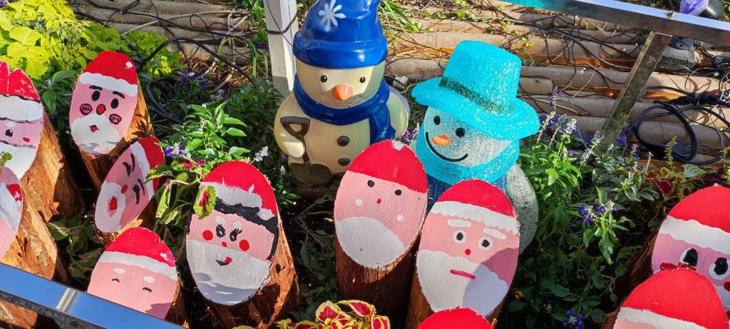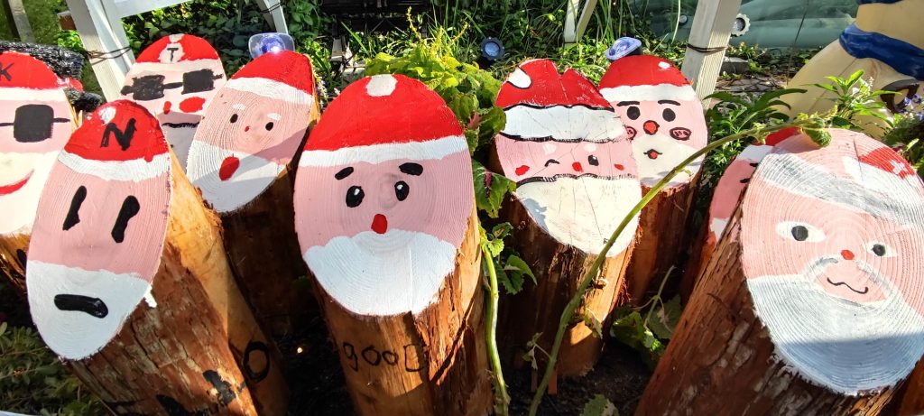 これらの『切り株サンタ』は、12月25日までイルミネーション会場に展示させて頂きます。