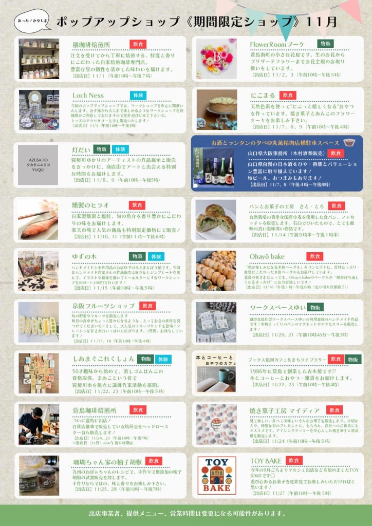 <ポップアップショップ 11月出店者のご紹介>