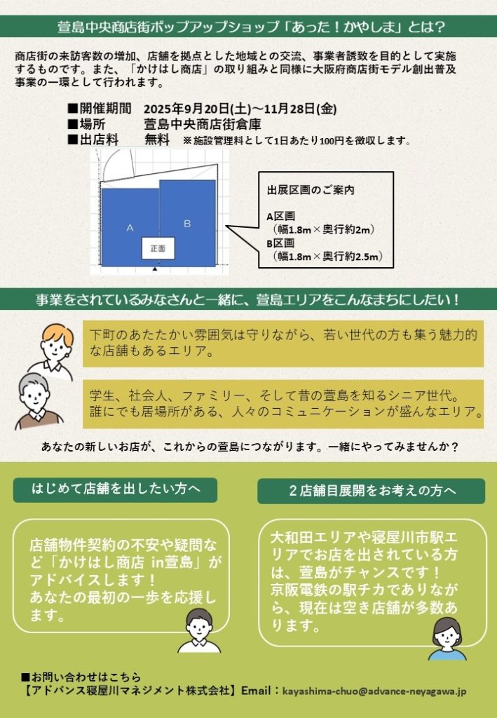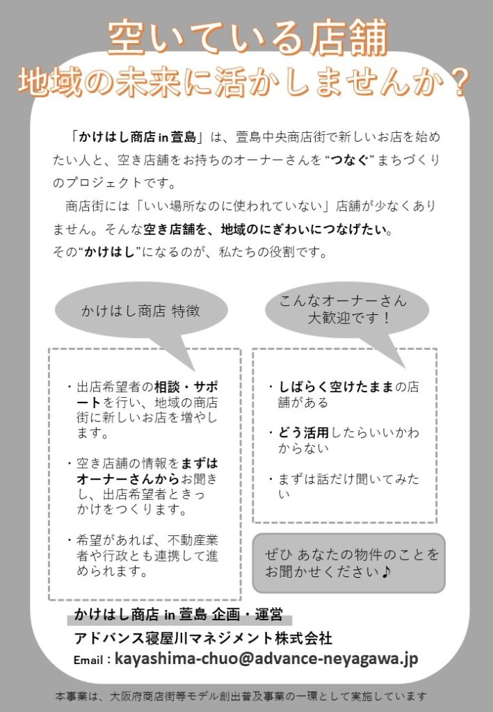 萱島中央商店会とアドバンス寝屋川マネジメント株式会社は、