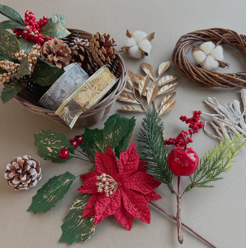#クリスマス #Christmas #Xmas #ポインセチア #12月 #師走 #年末 #リース #手作りリース #ハンドメイド #リースパーツ #造花