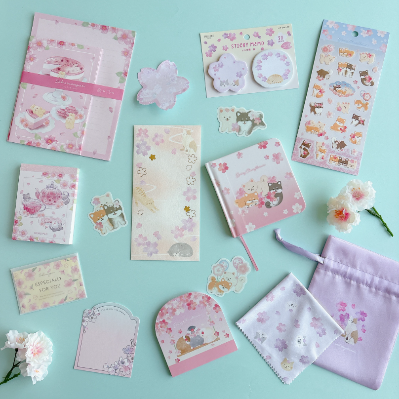 ふんわりやわらかな雰囲気の桜の雑貨🌸 猫や柴犬、文鳥などの動物や、スイーツとの組み合わせも👍 “100円で暮らしは楽しくなる“