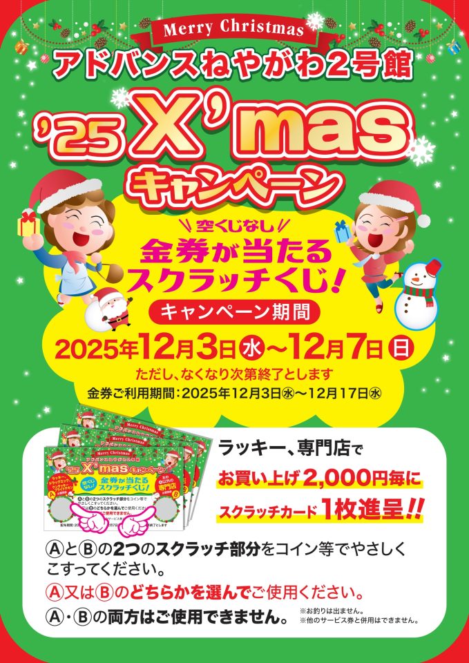 ≪2号館≫ 12/3(水) クリスマスキャンペーン開催 スクラッチカード進呈!!