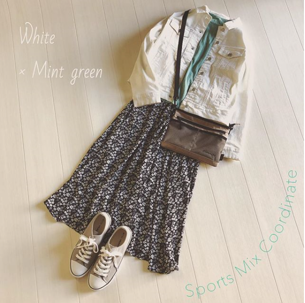 オフ×ミントの春色コーデ♡ サコッシュ&スニーカー合わせでスポーツテイストをMixしたコーディネートに♡
