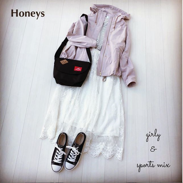 #フードジャケット #アウターコーデ #レーススカート #スカートコーデ #厚底スニーカー #スニーカー #春 #春コーデ #spring #springstyle #Honeys #ハニーズ #fashion #R_fashion #ootd #プチプラ #高見え #置き画 #置き画くら部 #きょコ #ハニマニ