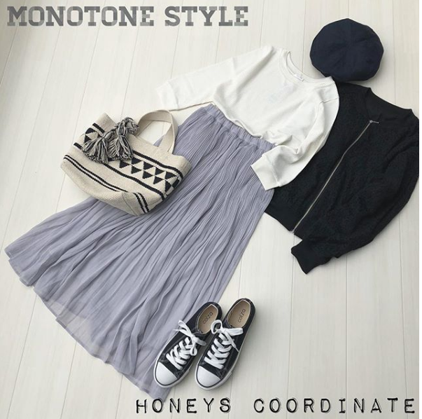 モノトーンでまとめて着やすいコーデに仕上げました。