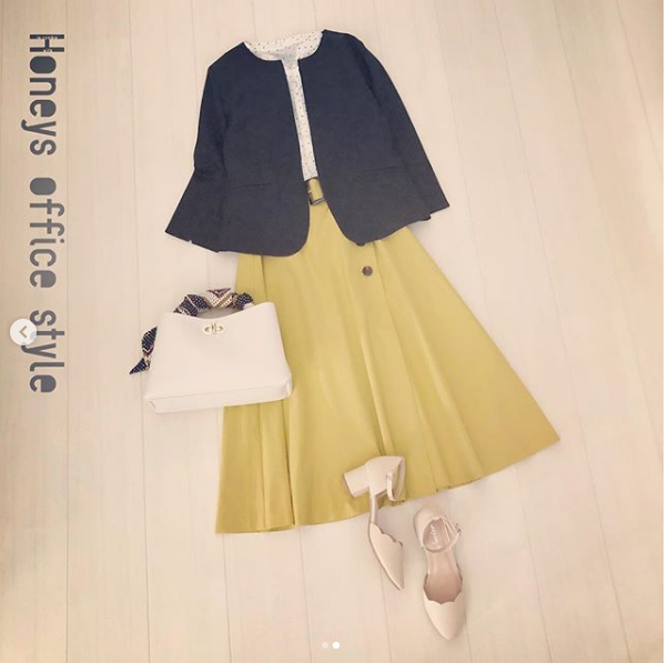 #ジャケット #ノーカラー #ブラウス #フリル袖 #フレアスカート #スカートコーデ #通勤コーデ #オフィススタイル #ドット柄#春 #春コーデ #spring #springstyle#Honeys #ハニーズ #fashion #R_fashion#ootd #プチプラ #高見え #置き画 #置き画くら部 #きょコ #ハニマニ