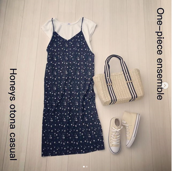 #ワンピース #ワンピアンサンブル #アンサンブル #かごBag #スニーカー #旅行 #帰省 #着回し #お得アイテム #初夏 #初夏コーデ #Honeys #ハニーズ #fashion #R_fashion #ootd #プチプラ #高見え #置き画 #置き画くら部 #きょコ #ハニマニ