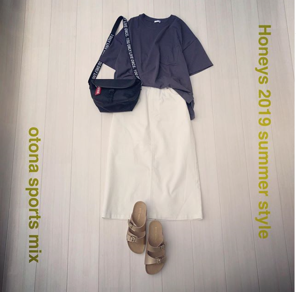 #Tシャツ #Tシャツコーデ #ゆるシルエット #スカート #白ボトム #ナロー #スカートコーデ #ロゴストラップ #メッセンジャーBag #サンダル #初夏 #夏 #夏コーデ #summer #summerstyle #Honeys #ハニーズ #fashion #R_fashion #ootd #プチプラ #高見え #置き画 #置き画くら部 #きょコ #ハニマニ