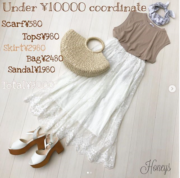 #summer#coordinate#honeys#ハニーズ #fashion #R_fashion #ootd #プチプラ #プチプラファッション#プチプラコーデ#置き画#置き画くら部#きょコ#いつコ#ハニマ二#全身トータル一万円以下
