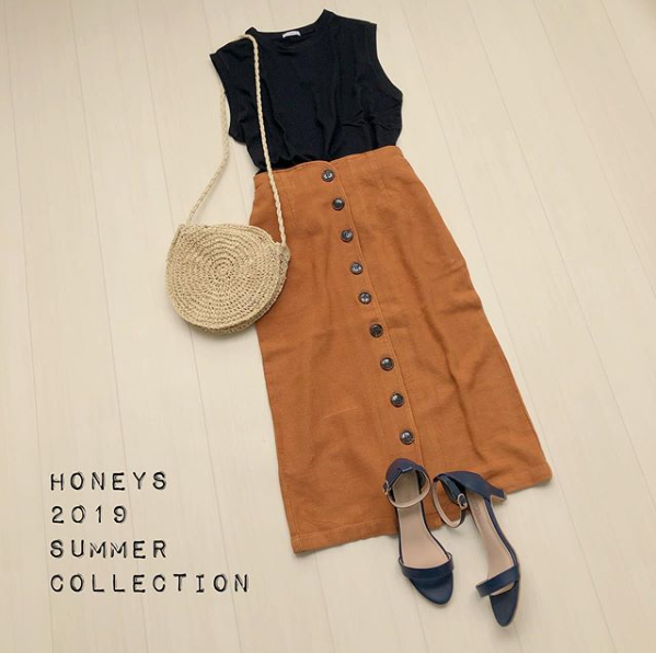 #ノースリ #Tシャツ #ナロースカート #スカートコーデ #大人スタイル #大人かわいい #サンダル #夏 #夏コーデ #summer #summerstyle #Honeys #ハニーズ #fashion #R_fashion #ootd #プチプラ #高見え #置き画 #置き画くら部 #きょコ #ハニマニ