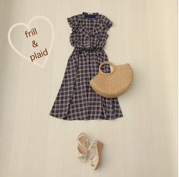 #ワンピース #フリル #チェック #ワンピコーデ #かごBag #サンダル #初夏 #夏 #夏コーデ #summer #summerstyle #Honeys #ハニーズ #fashion #R_fashion #ootd #プチプラ #高見え #置き画 #置き画くら部 #きょコ #ハニマニ
