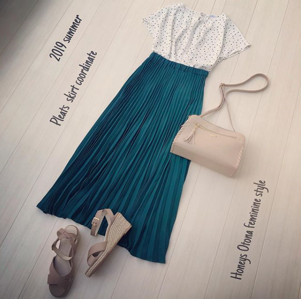 #ブラウス #ハートネック #変形ドット #ブラウスコーデ #プリーツスカート #スカート #スカートコーデ #ニュアンスカラー #グリーン #初夏 #夏 #夏コーデ #summer #summerstyle #Honeys #ハニーズ #fashion #R_fashion #ootd #プチプラ #高見え #置き画 #置き画くら部 #きょコ #ハニマニ
