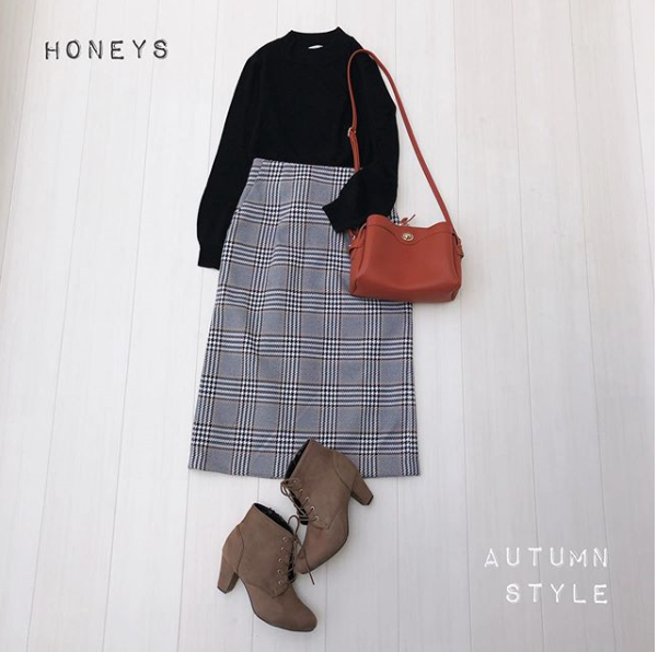 #ニット #ハイネック #チェック #タイトスカート #スカートコーデ #初秋 #秋 #秋コーデ #Honeys #ハニーズ #fashion #R_fashion #ootd #プチプラ #高見え #置き画 #置き画くら部 #きょコ #ハニマニ
