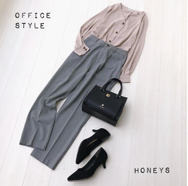 #ブラウス #Vネック #釦使い #テーパードパンツ #千鳥柄 #オフィススタイル #秋 #秋コーデ #Honeys #ハニーズ #fashion #R_fashion #ootd #プチプラ #高見え #置き画 #置き画くら部 #きょコ #ハニマニ