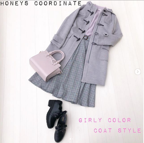 綿あめみたいなかわいい色味をグレー合わせで上品にコーディネート。 グレー合わせにすることで甘さ控えめで着やすいコーデに。