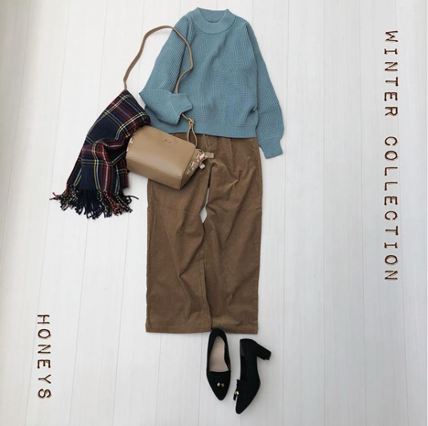 #ワッフル編み #ニット #ミント #ベージュボトム #コーデュロイ #大人カジュアル #冬 #冬コーデ #autumn #autumnstyle #Honeys #ハニーズ #fashion #R_fashion #ootd #プチプラ #高見え #置き画 #置き画くら部 #きょコ #ハニマニ