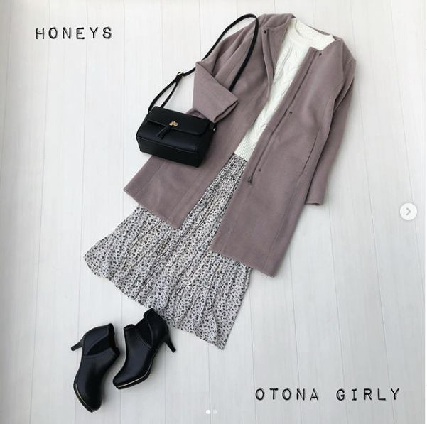 #Honeys #ハニーズ #fashion #R_fashion #ootd #プチプラ #高見え #置き画 #置き画くら部 #きょコ #ハニマニ#ノーカラーコート #ニット #ニットコーデ #小花柄 #スカート #スカートコーデ #お出かけコーデ #冬 #冬コーデ #winter #winterstyle