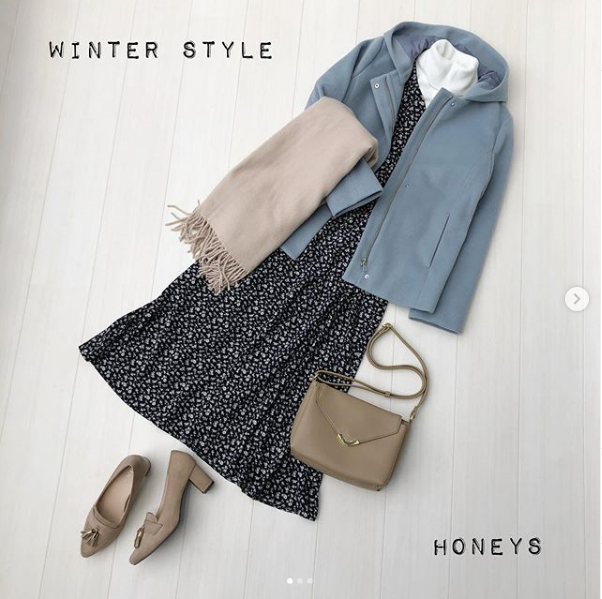 #Honeys #ハニーズ #fashion #R_fashion #ootd #プチプラ #高見え #置き画 #置き画くら部 #きょコ #ハニマニ#ワンピース #タートルネック #ニット #レイヤード #フード付きコート #冬アウター #アウターコーデ #着回し #冬 #冬コーデ #winter #winterstyle