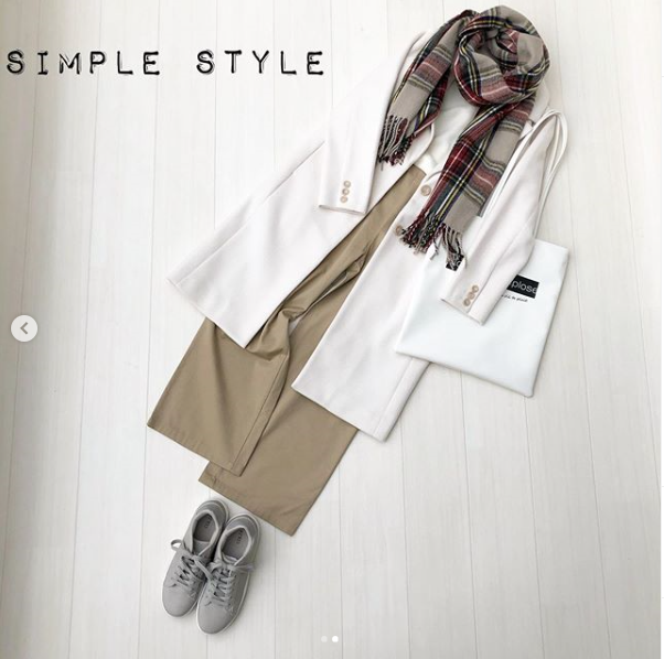 今年のキーカラー、ベージュを白と合わせて優しくコーデ。