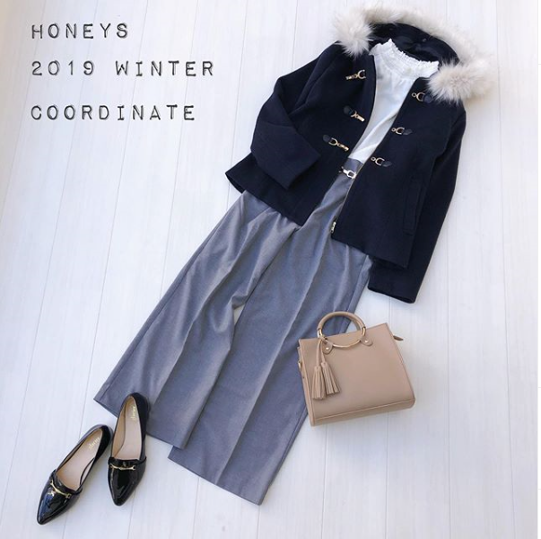 #ダッフルコート #ファー付き #コートスタイル #ハイネック #ブラウス #パンツ #パンツスタイル #冬 #冬コーデ #winter #winterstyle #Honeys #ハニーズ #fashion #R_fashion #ootd #プチプラ #高見え #置き画 #置き画くら部 #きょコ #ハニマニ