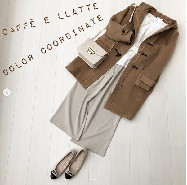 カジュアルも、きれい目も、女っぽくもハンサムにもオールマイティ使えるベージュ!ダッフルコートでカジュアルかつワイドパンツで上品なコーデに仕上げました。