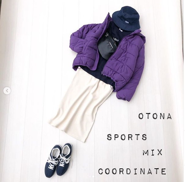 カジュアルでやんちゃななイメージのカラーブルゾンでちょっぴり大人っぽコーデ。 ボリューミーなブルゾンに、ナロースカートがシャープでこなれた印象も加えてくれるベストバランス。