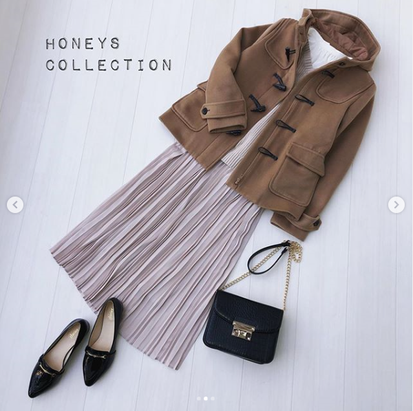 #ダッフル #ダッフルコート #コートスタイル #ニットベスト #レイヤード #ガーリー #2Way #ブラウス #スカートコーデ #冬 #冬コーデ #winter #winterstyle #Honeys #ハニーズ #fashion #R_fashion #ootd #プチプラ #高見え #置き画 #置き画くら部 #きょコ #ハニマニ