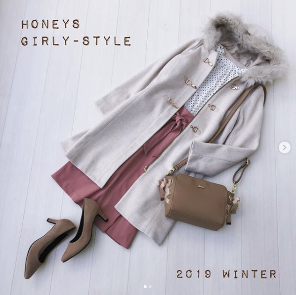 #ダッフル #ファー使い #ダッフルコート #コートスタイル #ハイネック #ブラウス #スカート #ピンク #スカートコーデ #冬 #冬コーデ #winter #winterstyle #Honeys #ハニーズ #fashion #R_fashion #ootd #プチプラ #高見え #置き画 #置き画くら部 #きょコ #ハニマニ