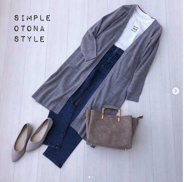 定番アイテムで大人かわいいカジュアルスタイルに カーデはかなり長めの丈なのでショートボトムやスカートとの相性も◎