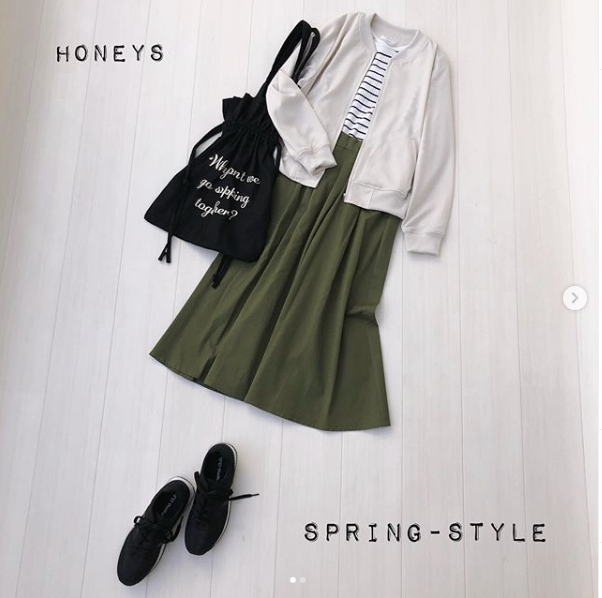 #ブルゾン #とろみ素材 #春アウター #リブニット #コンパクト #お役立ち #チノフレア #スカート #スカートコーデ #異素材 #春 #春コーデ #spring #springstyle #Honeys #ハニーズ #fashion #R_fashion #ootd #プチプラ #高見え #置き画 #置き画くら部 #きょコ #ハニマニ #ハニジョ