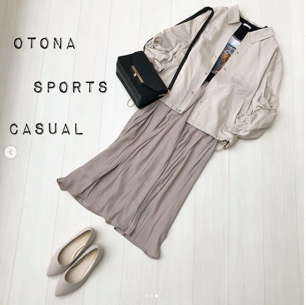 フェミニンな第一印象のふんわりロングスカート。合わせをフォトTシャツやコーチジャケットなど、辛口ストリートアイテムにしていつもとマイナーチェンジ。ジャケットとスカートでトーンを合わせたスタイリングは大人見えも狙えるおしゃれスタイル。