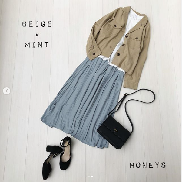 #ミリタリージャケット #ショート丈 #ロゴT #スカート #スカートスタイル #ミント #ベージュ #春カラー #春 #春コーデ #spring #springstyle #Honeys #ハニーズ #fashion #R_fashion #ootd #プチプラ #高見え #置き画 #置き画くら部 #きょコ #ハニマニ #ハニジョ