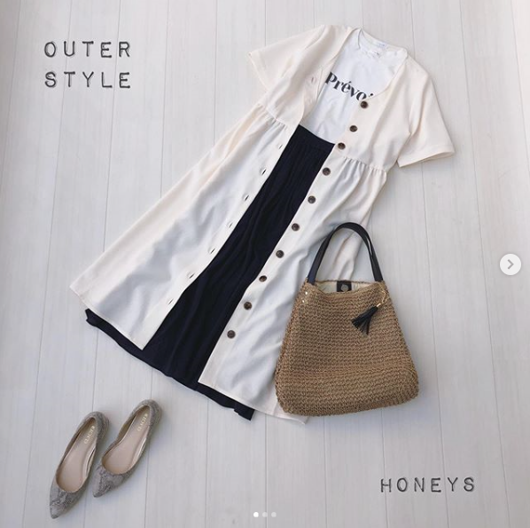 #おうち時間 #ワンピース #羽織り #着回し #羽織りスタイル #Tシャツ #スカート #春 #春スタイル #spring #springstyle #Honeys #ハニーズ #fashion #R_fashion #ootd #プチプラ #高見え #置き画 #置き画くら部 #きょコ #ハニマニ #ハニジョ