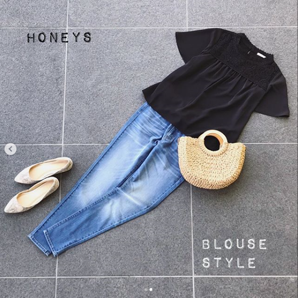 #おうち時間 #ブラウス #レース #レース切替 #ブラウスコーデ #デニム #スキニー #大人コーデ #春 #春コーデ #初夏 #spring #springstyle #Honeys #ハニーズ #fashion #R_fashion #ootd #プチプラ #高見え #置き画 #置き画くら部 #きょコ #ハニマニ #ハニジョ