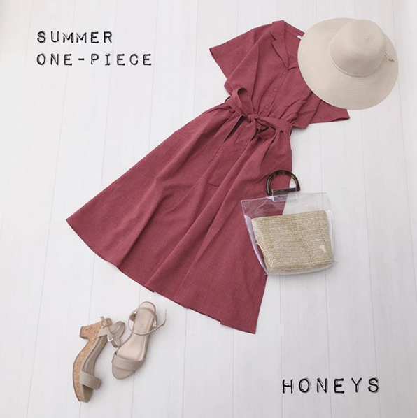#つば広帽 #ワンピース #開襟 #キレイ色 #夏 #大人かわいい #summer #summerstyle #Honeys #ハニーズ #fashion #R_fashion #ootd #プチプラ #高見え #置き画 #置き画くら部 #きょコ #ハニマニ #ハニジョ